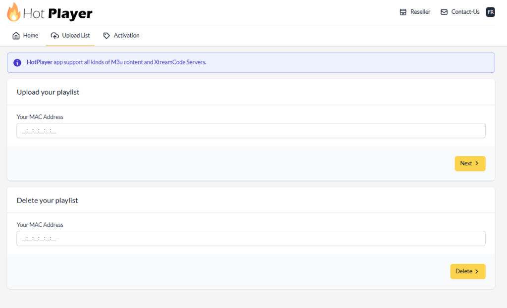 2. Besøg HOT IPTV Hjemmesiden: Åbn linket, som vises i HOT IPTV appen: https://hotplayer.app/upload.